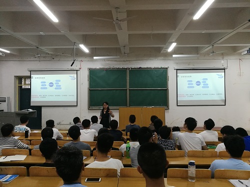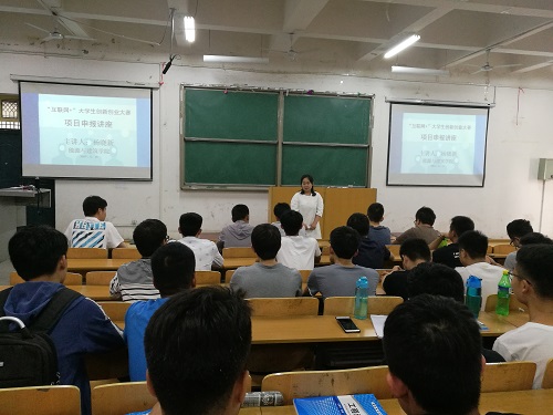 然后杨晓新从项目确定、参赛定位、商业计划书、项目申请书等四个方面为同学们做了一堂精彩的讲座。杨晓新结合自己丰富的申报经验,针对如何获取项目思路、如何组建团队、如何确定参赛项目类别、如何选择商业运营模式、如何凝练创新点等问题一一进行了讲解,并结合往届大赛优秀项目进行了实例说明。通过讲解,使同学们对“互联网+”大赛有了更加深入的认识,对项目申报流程和项目申报材料撰写技巧有了更加深入的了解。