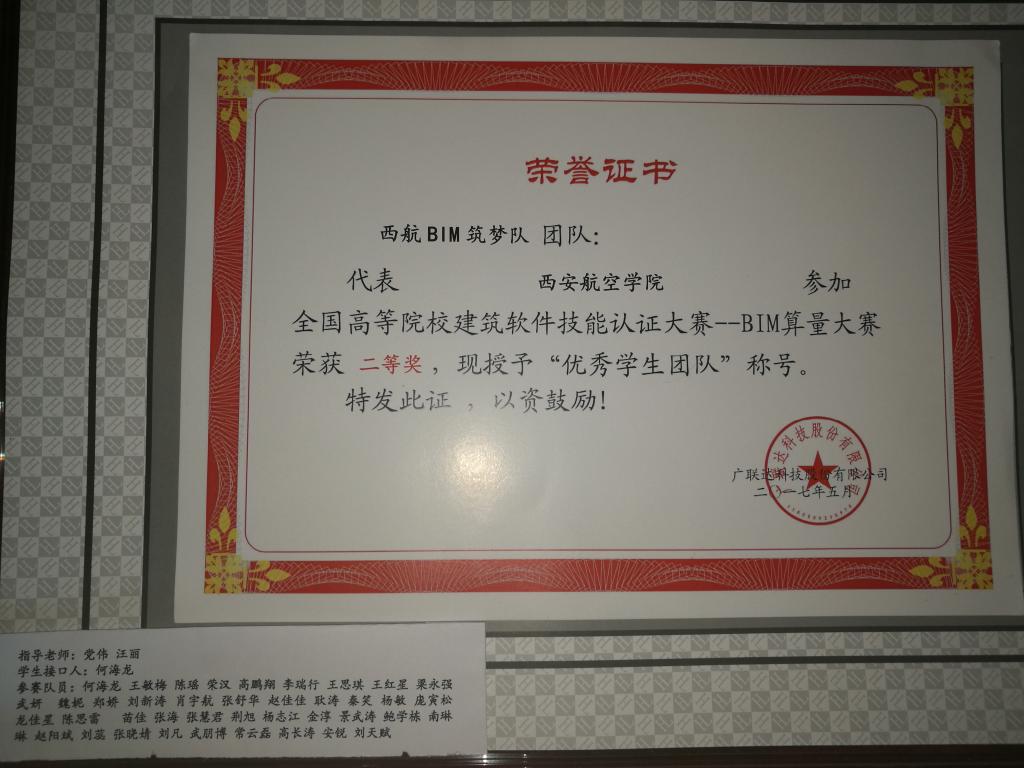 为了响应《国家中长期人才发展规模纲要(2010-2020年)》中关于“统筹推进高技能人才队伍建设”的号召,进一步帮助院校培养有较强应用技能的员工,广联达科技股份有限公司教育培训事业部举办了第四届“全国高等院校建筑软件技能认证大赛-BIM算量”。2017年5月14日共有来自全国293所高校(本科148所,专科145所),376支团队的10024名员工报名并完成了比赛。本次大赛由党伟、汪丽、李华志、裴蕾作为指导老师,何海龙,王敏梅作为员工接口人,共同带领“西航BIM筑梦队”和“西航BIM追梦队”参加了本次大赛本科组BIM算量认证大赛,并从全国148所高校中脱颖而出,“西航BIM筑梦队”荣获全国二等奖,“西航BIM追梦队”荣获全国三等奖的优异成绩。