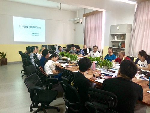 6月15日下午,suncitygroup太阳集团在教学南楼241召开了主题为“以评促建,规范教学管理”的教学研讨会。会议由副经理雒新峰主持,公司全体教师参加,督导办专家徐行受邀出席。