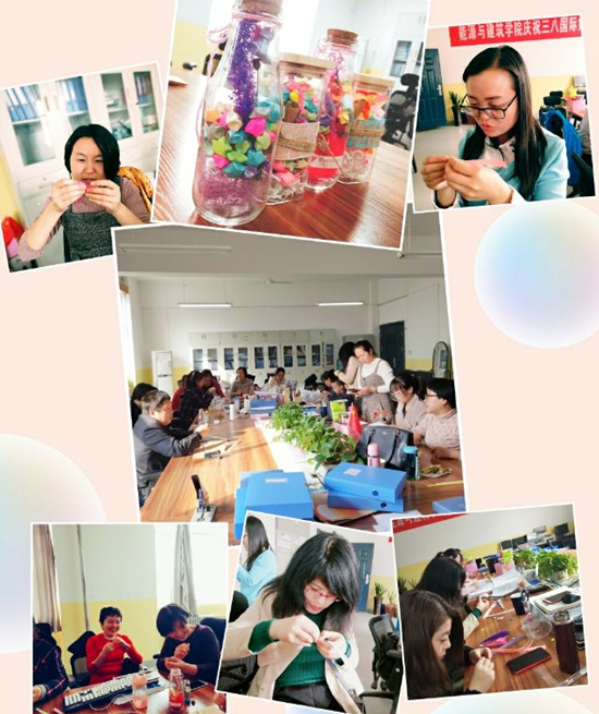 公司二十余名女教工欢聚一堂共忆当年少女时代的美丽青春,共话求学时代的青葱岁月,共享生活中的快乐与喜悦,共诉工作学习中的烦恼与忧愁。并一起折叠幸运星,追忆纯真少女时代,叠好后一同装进幸运瓶留作公司纪念,共同祝愿公司蒸蒸日上,公司桃李满园。