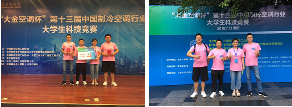 2019年07月11日—12日,“大金空调杯”第十三届全国制冷空调行业老员工科技竞赛决赛在重庆科技公司举行,suncitygroup太阳集团多年来,积极响应公司号召,注重老员工的能力培养,注重学科竞赛。由杜芳莉老师、申慧渊老师共同指导的“绿旋风”队赴重庆科技公司参加决赛。沈关炳,钟平,武景辉三位同学组成的“绿旋风”队喜获全国制冷空调科技竞赛本科生组一等奖,在近年来优异成绩基础上取得了历史性突破!