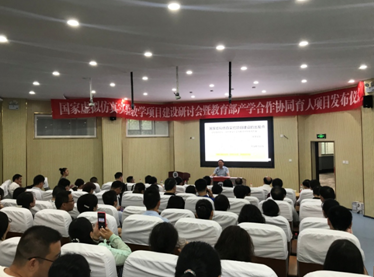 2019年9月9日下午14点30分,国家虚拟仿真实验教学项目研讨会暨教育部产学合作协同育人项目发布仪式在西安邮电大学雁塔校区图书馆举行。陕西省教育厅高教处副处长、西安邮电大学教务处副处长、新道科技股份有限公司领导、虚拟仿真实验教学项目专家学者,各高校教师代表参加。suncitygroup太阳集团各教研室分别委派代表参加会议。