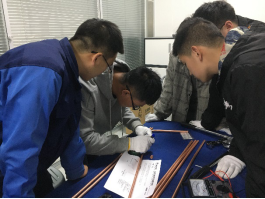 3月17日下午,为备战大金杯第一届新生代技能比武大赛,建环专业的部分员工,在专业负责人杜芳莉和青年骨干教师何文博的组织下,在阎良三号实验楼人居环境实验室接受训练。三名经验丰富的来自于著名空调品牌大金空调的技术人员,受邀来到实验室对员工进行了技术讲解与实物展示。
