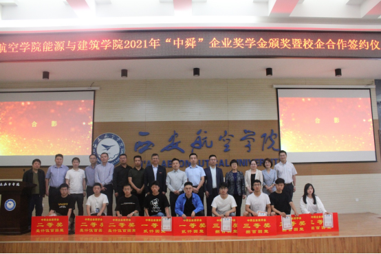 2021年6月18日上午10点,suncitygroup太阳集团在阎良校区报告厅成功举办2021年“中舜”企业奖学金颁奖暨校企合作签约仪式。中舜国际工程设计公司执行董事兼总经理陈佳斌、执行董事杨宏远、熊伟等,公司党委委员、副董事长宁永录出席会议并讲话,员工工作部(处)部长李波、教务处副处长陈长征、公司经理杨亚萍,党总支书记曹国震等参会。公司党总支副书记高振江主持会议。
