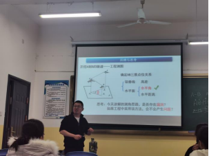何文博老师讲的主要内容是《工程测量》课程中的经纬仪测量原理与结构,他借助教具和实例为大家介绍了经纬仪的组成和使用方法,并用提问的方式引导大家融入课堂,讲解富有激情和感染力,并注意互动,课堂气氛融洽。