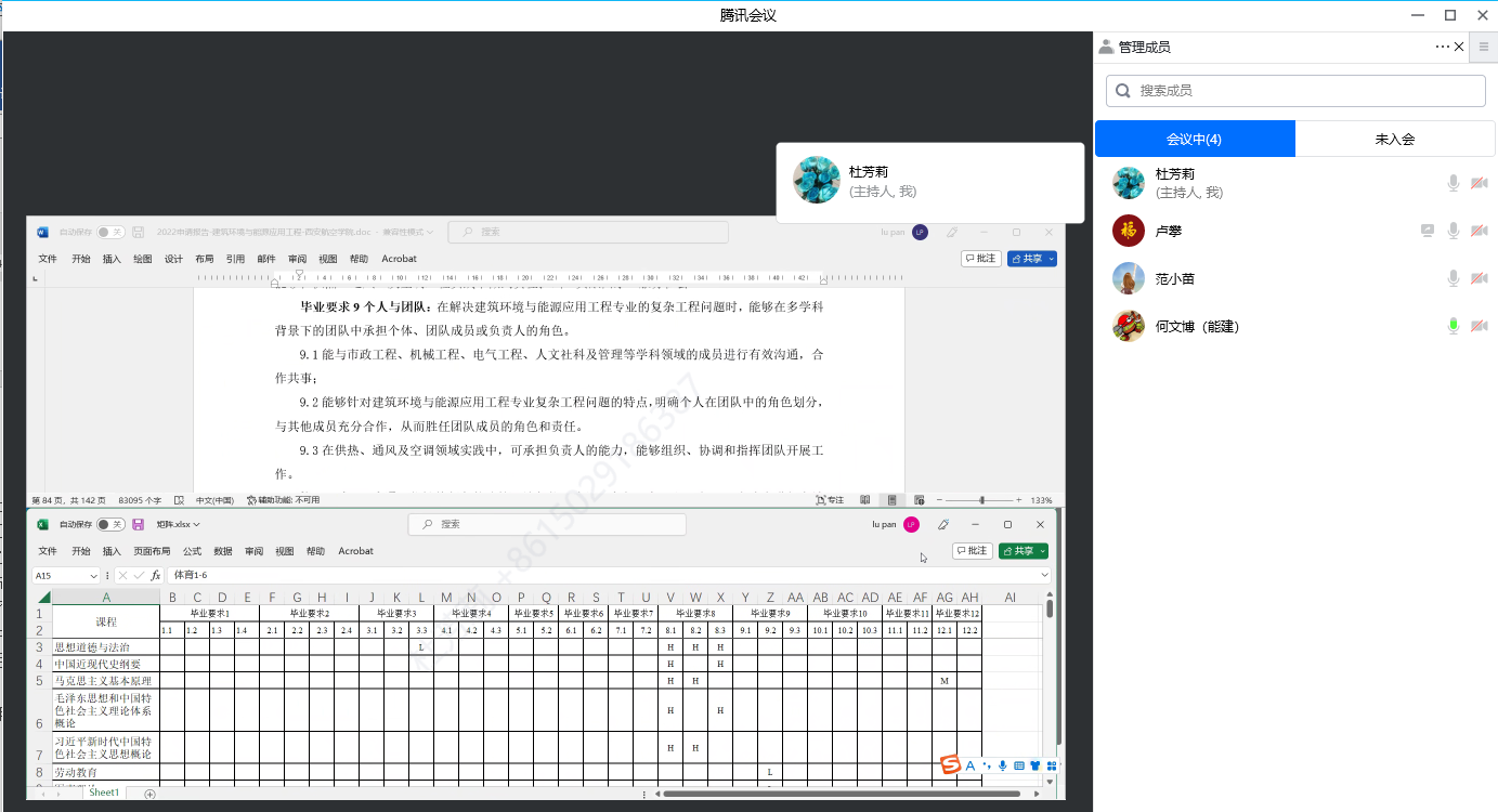 最后,杜芳莉对本次建环专业课程体系对毕业要求支撑的2个矩阵进行了总结,并对后续建环专业人才培养方案修订的重点工作任务进行分解。(文、图/杜芳莉 审核/范小苗)