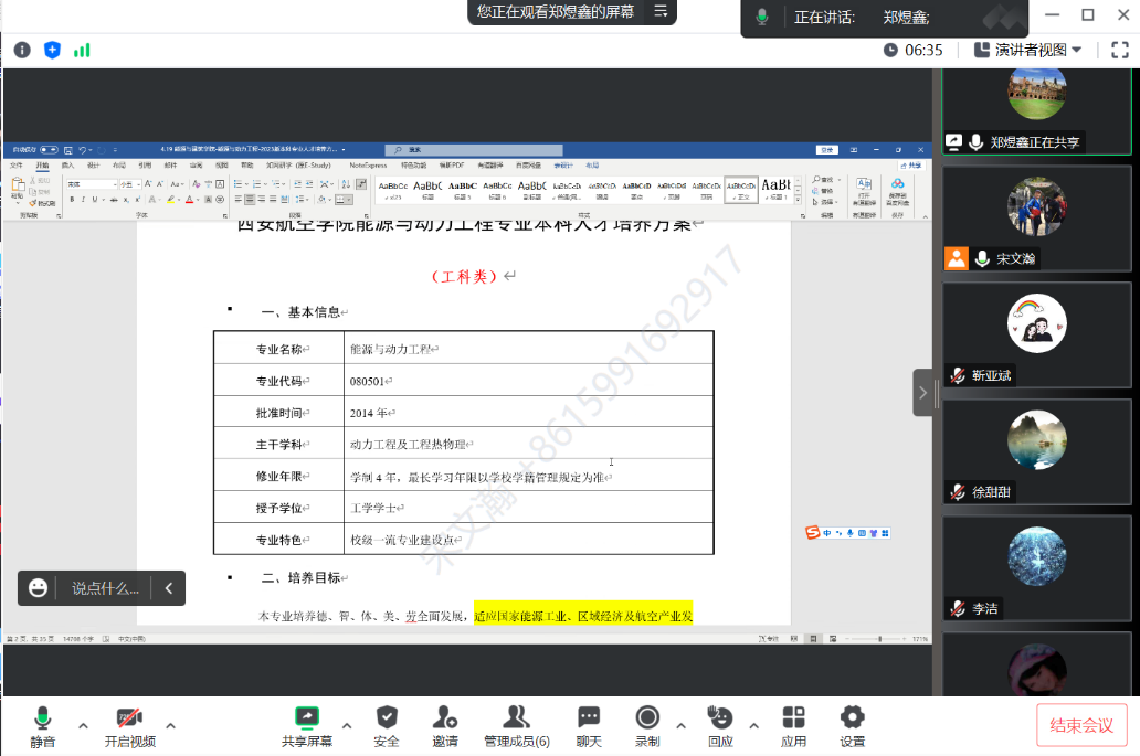 2023年4月27日20:00,能动教研室全体教师在腾讯会议线上召开了以“2023级人才培养方案修订研讨会”为题的教研活动,活动内容是对2023级人才培养方案所修订的内容进行研讨。活动由教研室主任宋文瀚主持。