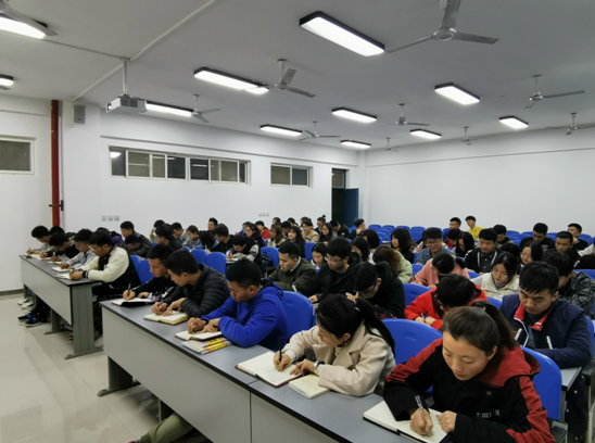 刘剑坤从四个方面深入浅出为员工党员上了一场精彩的党课,一是合格党员的标准以及如何做一名合格的员工党员。二是要贯彻守初心、担使命、找差距、抓落实的总要求,切实把主题教育与学风建设、综合素质提升相结合,实现理论学习有收获、思想政治受洗礼、干事创业敢担当、为民服务解难题的教育目标。三是要带头落实公司本科合格评估和学风建设的要求,认真履行党员责任,发挥员工党员先锋模范作用。四是党员发挥作用合格。在学风建设、宿舍管理、上课要求等三方面九项措施落实中,员工党员要率先垂范,要在学业帮扶、学风督促中发挥作用。