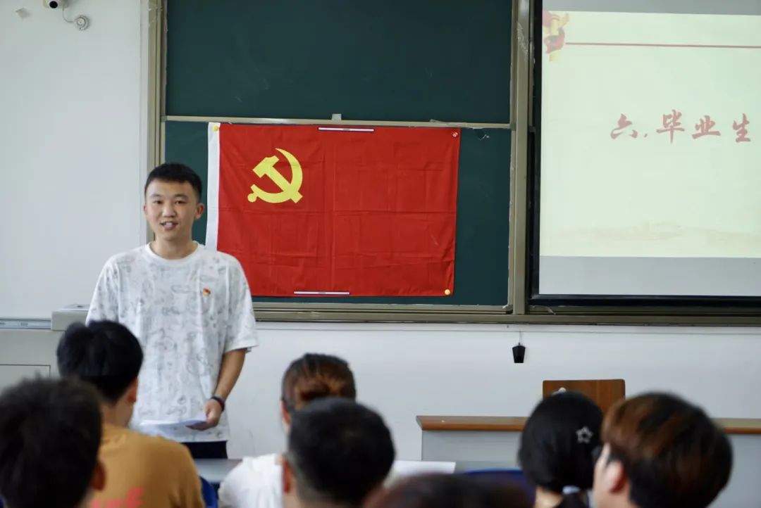由毕业生党员发言,留下他们的毕业赠言,与学弟学妹共勉,怀揣中国共产党人的光辉使命,砥砺前行。