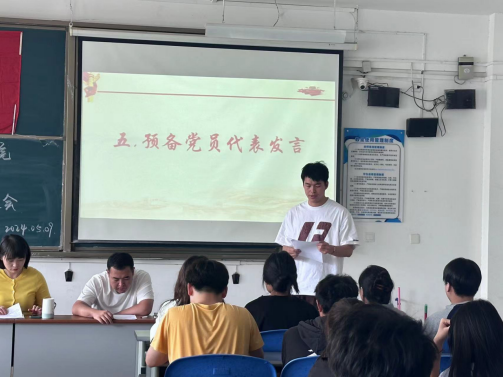 大会第五项,主持人宣读支部大会决议。并由优秀预备党员代表发言。