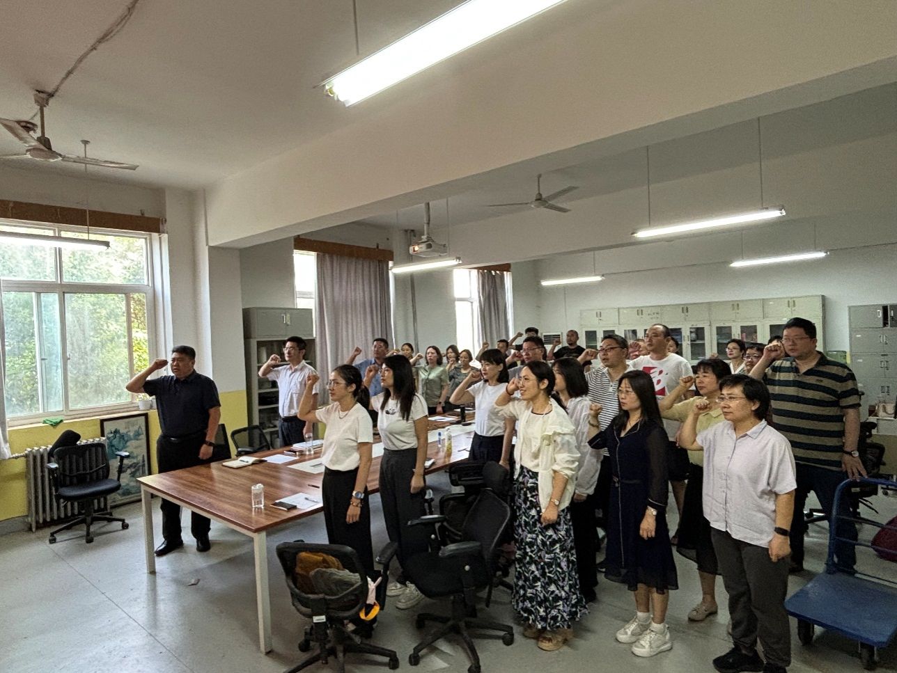 随后,党课进入了重温入党誓词的环节。在曹国震的带领下,全体党员庄严地举起右手,齐声诵读入党誓词。通过重温入党誓词,党员们更加坚定了理想信念,明确了职责使命,表示将不忘初心、牢记使命,为党和人民的事业不懈奋斗。