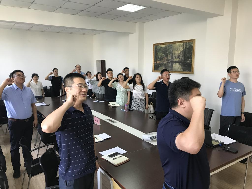会上,公司党总支书记曹国震领誓,全体参会教师进行了宣誓。