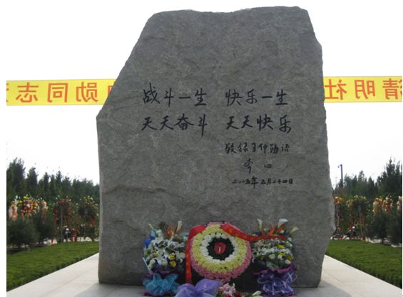 坐像的后背上,是夫人齐心对习仲勋一生的评价,依然清晰可见:“天天战斗,天天快乐;奋斗一生,快乐一生”。