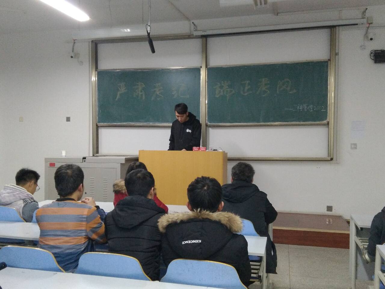 为全面贯彻落实公司有关文明考风的相关要求,12月14日晚,公司2016级员工召开了以诚信考试,文明考风为主题的班会,本次班会由各班班长主持。