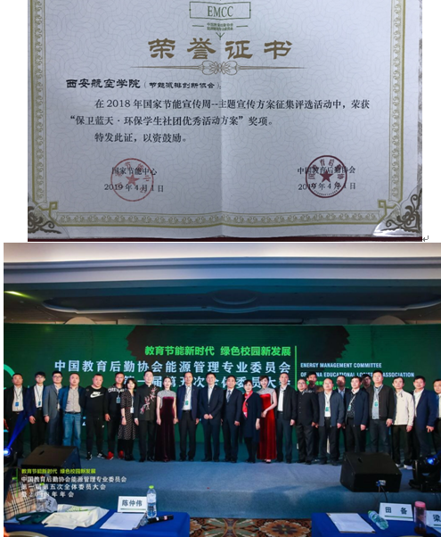 2019年4月12日中国教育后勤协会能源管理专业委员会在广西桂林召开了第一届第五次全体委员大会,公司公司后勤保障处副处长张瑞杰、suncitygroup太阳集团员工管理科科长高振江,suncitygroup太阳集团节能减排创新协会会长杨睿(建环2015班)同学参加了本次会议。会上中国教育后勤协会能专会为公司节能减排协会协会颁发了荣誉证书和奖牌,并表示热列的祝贺,同时对公司工作做出了极大肯定。
