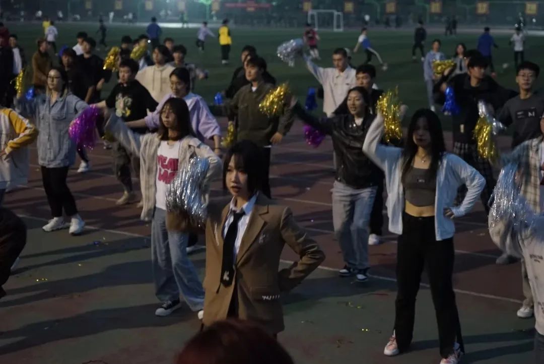 月光洒下,给排水202班肖陶瑜,田野,工管211班孙合翔,及工管212班王倩等员工干部,以身作则,与各位同学一同手臂转起,步伐向前,花球挥动,汗水挥洒,训练学习,在正式表演时穿上厚重的玩偶服,与观众亲密互动,似火的骄阳却也无法阻挡他们随音乐舞动的身影。