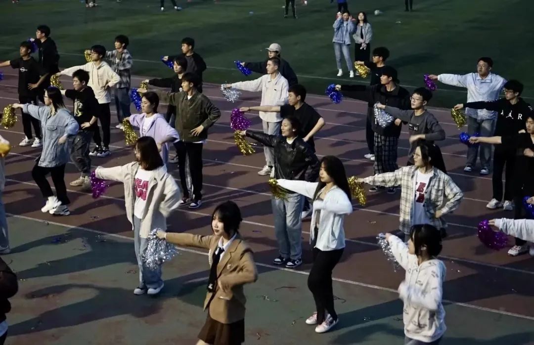 夕阳西下,大家在经历了一天紧张的课程学习后,仍然能够准时到达训练场地,展开训练,将复杂的动作分解,一遍又一遍的跳着相同的动作,不断地举起手臂,蹲下站起,只为最后展现更好的表演。