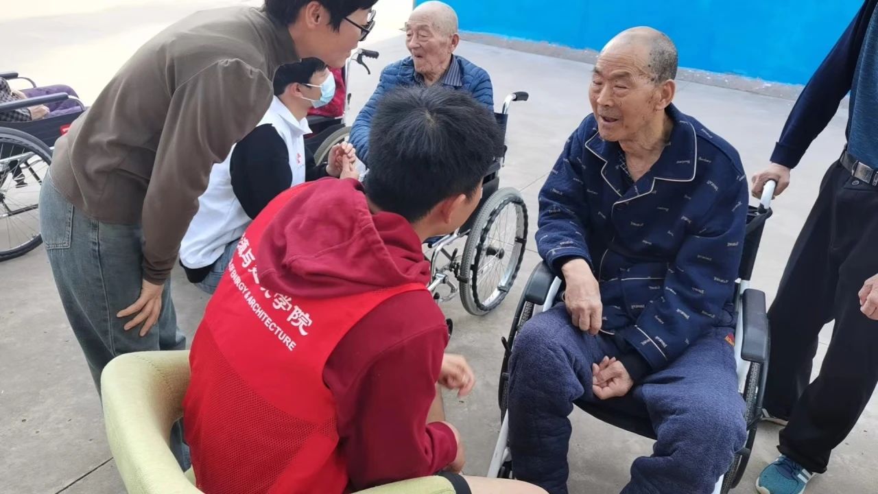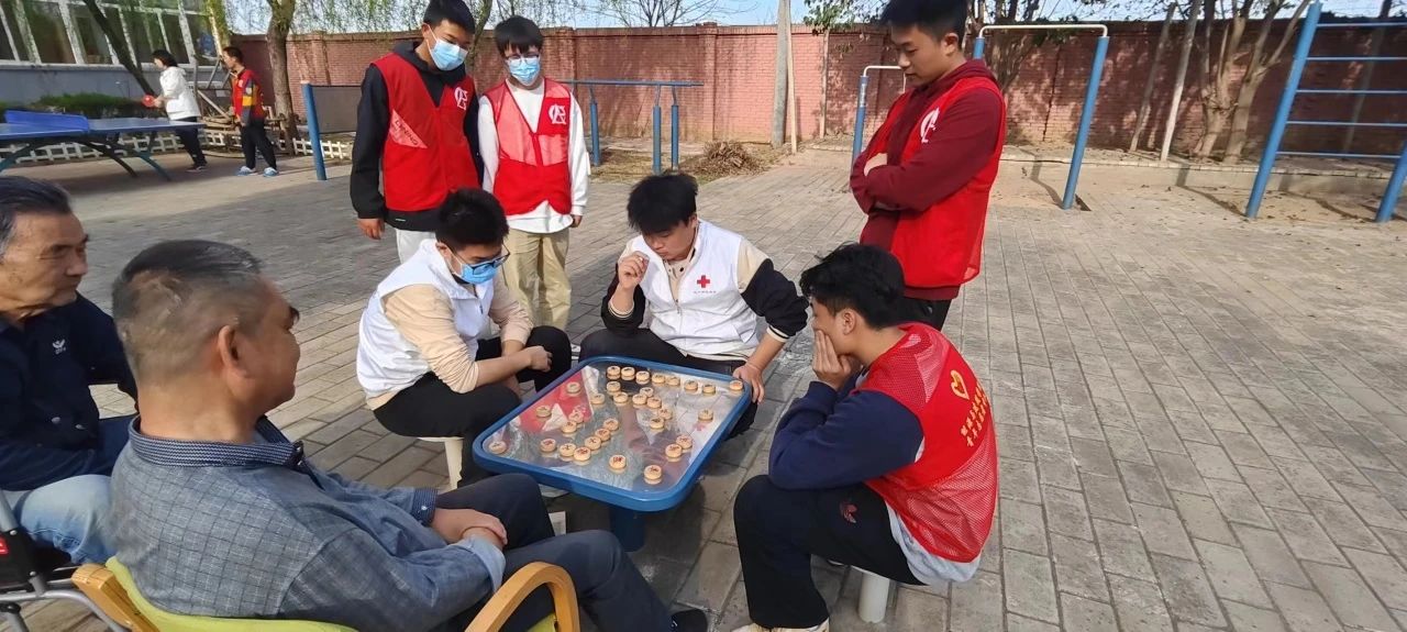 劳动过后,志愿者们开始和老人们进行互动,老人也都纷纷兴奋起来,面对这股青春力量,老人们似乎格外喜爱。有的兴高采烈地与志愿者们打起了乒乓球,比拼起了体力与技巧;有的则围桌而坐,眉头紧锁地与志愿者们下起了象棋,进行头脑的较量;还有的促膝长谈,神采奕奕地与志愿者们讲起了自己年轻时的故事,讲述只属于自己的辉煌人生,好不快活!但同时,有的老人们拉着我们的手问寒问暖,十分关心我们各方面的情况,询问现在的生活还好吗,苦不苦,动作虽简单,但体现出了老一辈们对年轻一代的殷切期望和关怀。或许,在这里老人们很少见到年轻一代的身影出现,以至于我们的到来使他们兴奋异常……