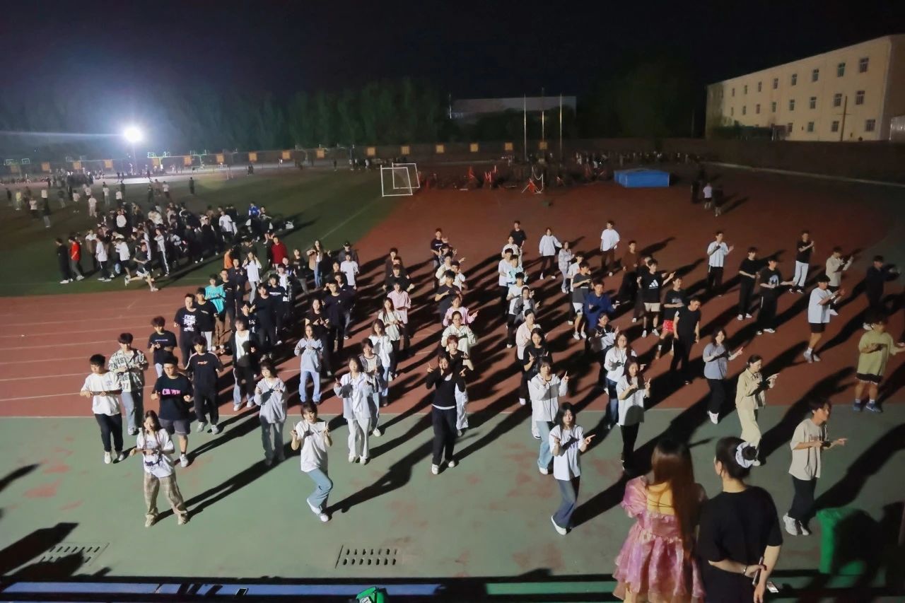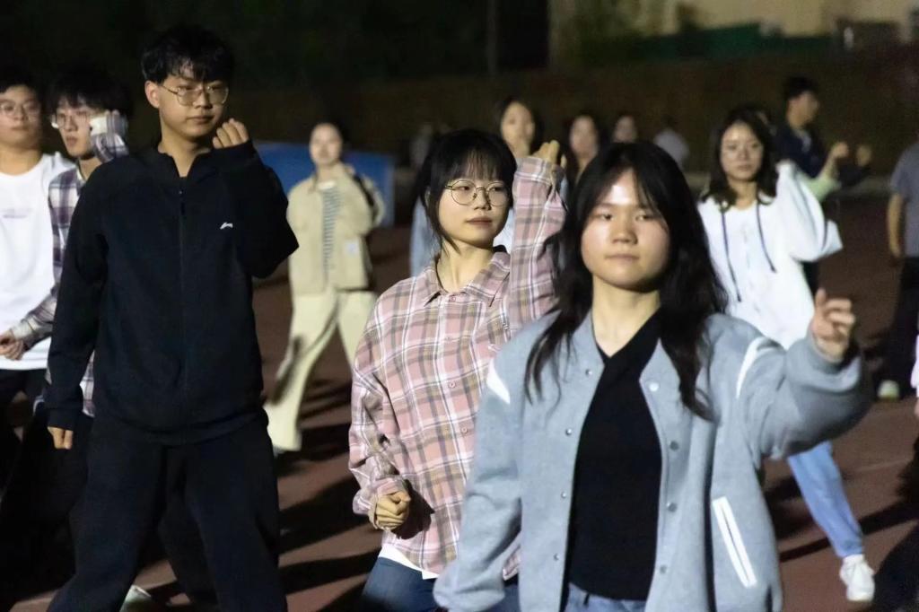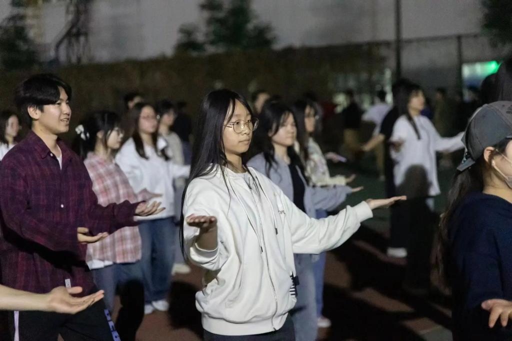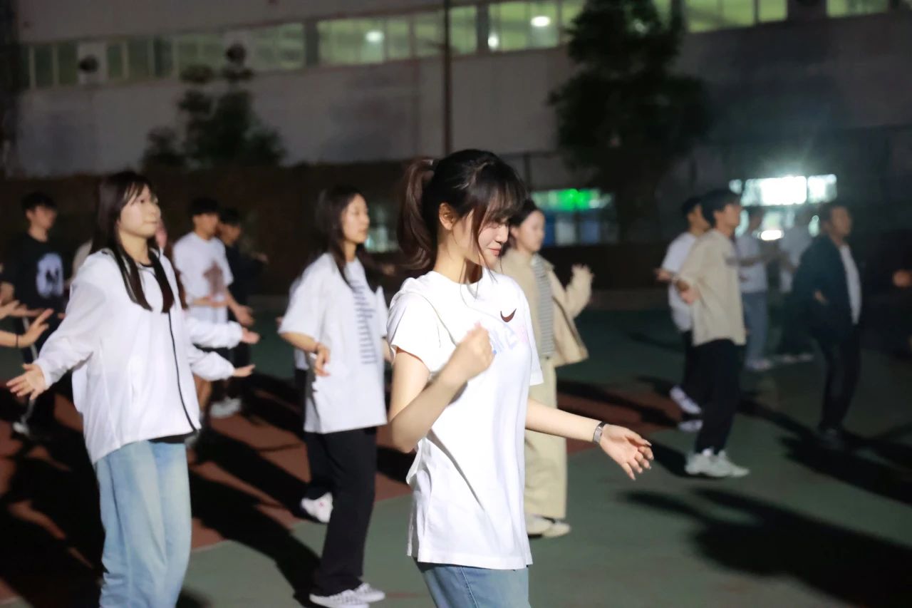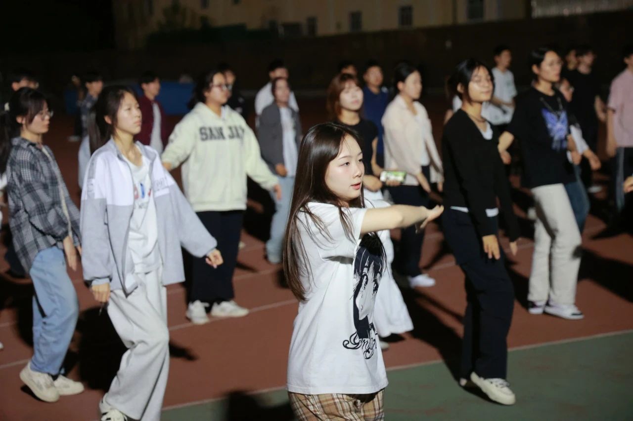 在紧张的节目彩排过程中,高振江,李轶鹏和李青三位老师的眼神显得格外专注,他们仔细审视着每个动作,不放过任何一个瑕疵。舞蹈队员们配合默契,舞姿优美协调,每一个动作都充满力量和韵律感,展现出学子们多才多艺的青春风貌。