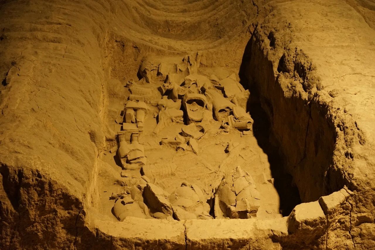 讲解员带我们参观了兵马俑三个坑位,深有感触。一号坑位面积最大,兵马俑类型多样,个性鲜明;二号坑位最暗,造型独特;三号坑位最小,但马车格外引人注目。经过这次的活动,见证了气势磅礴的兵马俑,让我欣赏到了悠久的历史文化。