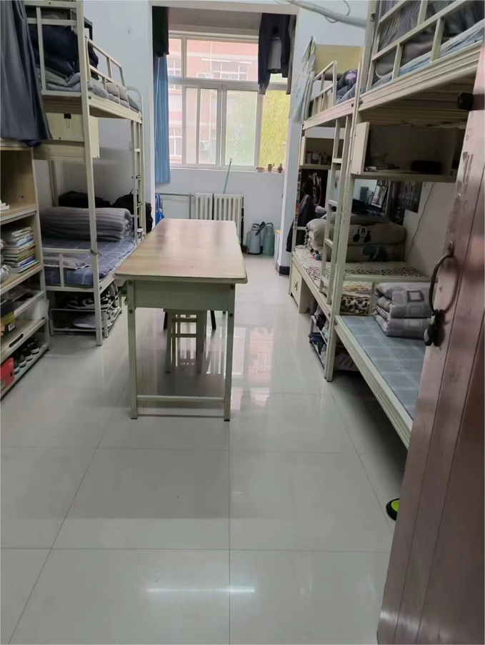 2.床铺:被子叠放整齐,床单褥子铺展;衣物存柜或挂起,床上无杂物;床头书架干净,书及学习用品摆放整齐有序等。