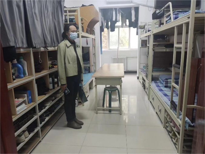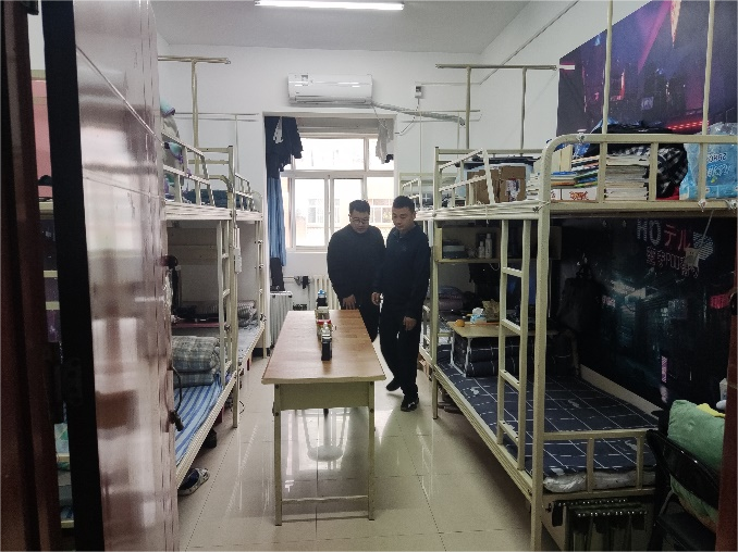 为创造安全、整洁、温馨的住宿环境,培养同学们良好的生活卫生习惯,4月13日,员工处陈文博老师,suncitygroup太阳集团辅导员樊梦云,士官公司教官敬超凡在三号公寓对2022级全体宿舍进行检查。