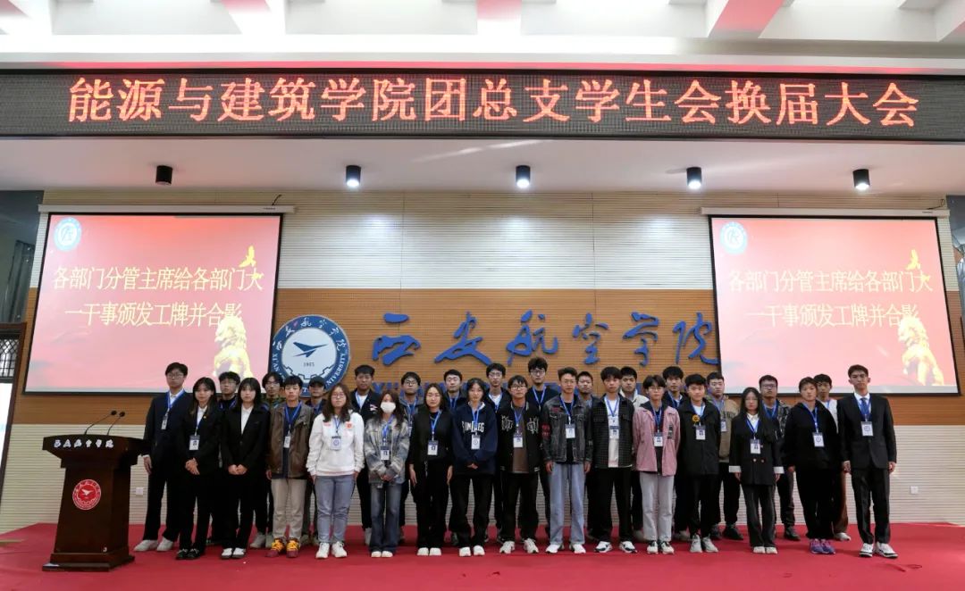 第九项,各部门负责人给各部门大一干事领发工牌并合影留念