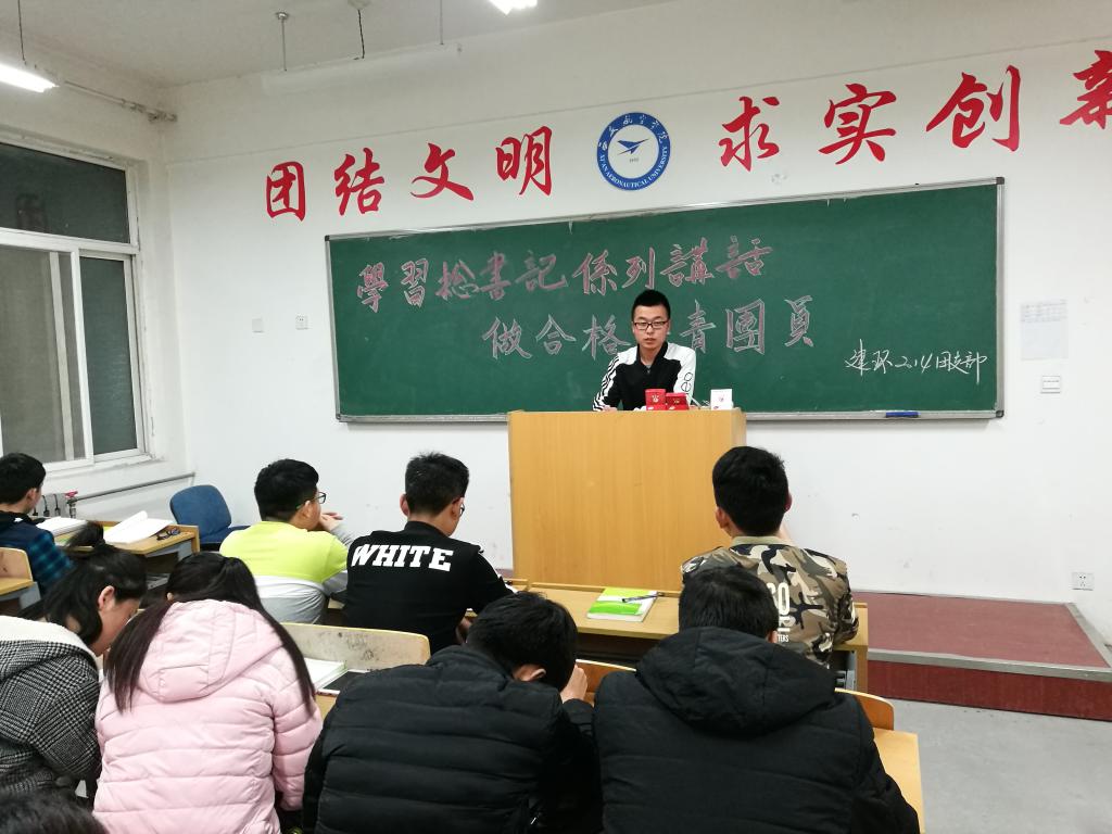 会议一开始,班长向同学们介绍了“一学一做”的基本内容,他说,“一学一做”就是指“学习习近平总书记系列讲话,做合格共青团员”,这一内容对于我们当代老员工而言仍具有重要意义。紧接着,班长组织大家进行“一学一做”相关知识的知识竞答,同学们踊跃参与,在相互的问答中同学们加深了对习近平总书记的重要讲话内容的了解。