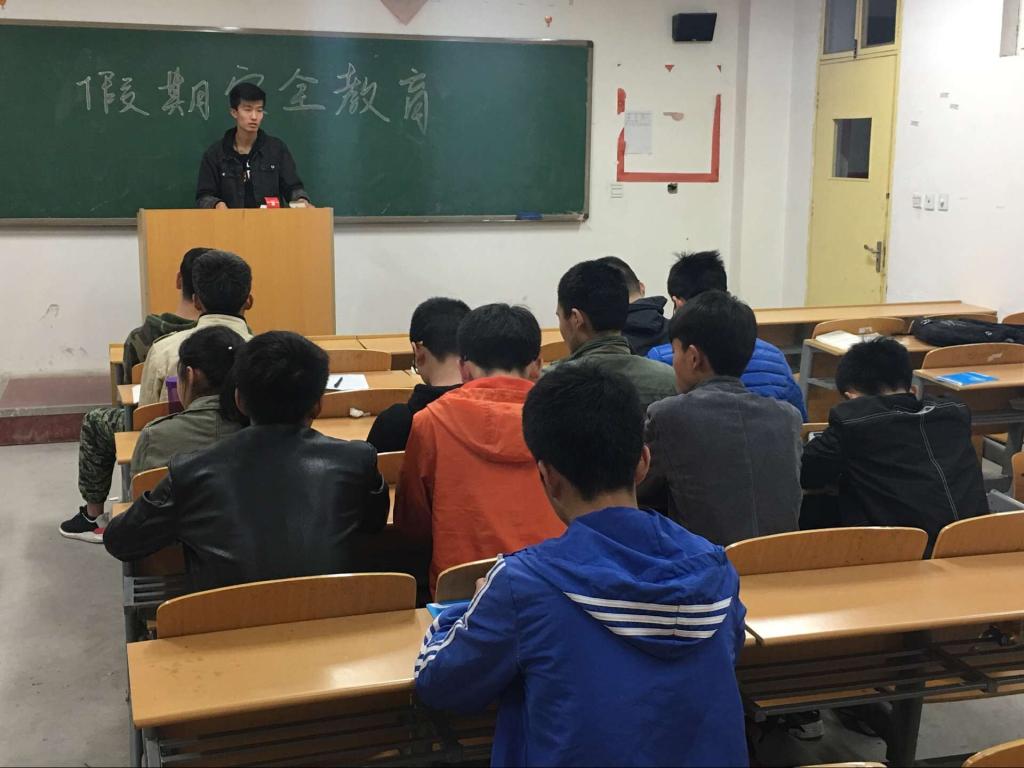 此次班会主要有三项内容。第一项通知了清明节假期放假安排及串休安排,具体放假日期为4月2日~4月4日(本周日至下周二)。第二项,通知了收假日期及销假要求,强调4月4日下午各班班长及时统计到校人员名单,如有未到者,需及时报给辅导员老师,销假时必须本人亲自销假,不许他人代替销假。第三项强调了假期安全问题,留校同学要保证不晚归、不留宿校外,回家的同学要自觉不坐黑车,保证自己的人身财产安全。尤其强调了同学在假期中禁止到校外开展集体活动,拒绝不安全活动,合理安排假期生活,注意个人安全。