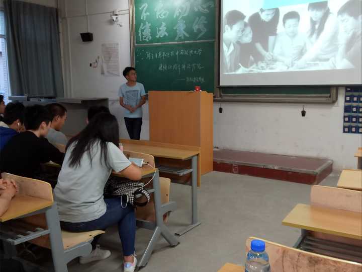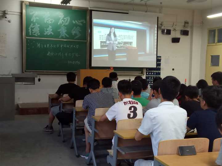 会上,徐思靖同学就法制知识做了生动地讲解,期间,他又通过视频播放,再一次加深了同学们对法律知识的认识。