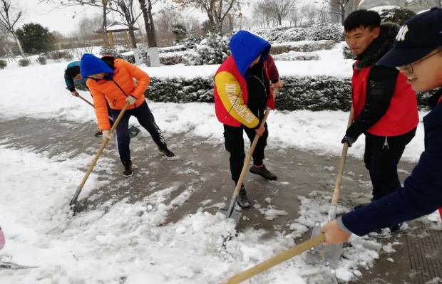 党员先锋队与青年志愿者中队的志愿者们们冒着严寒,拿着铁锹,扫帚,整个过程井然有序。即使被刺骨的寒风吹的直打哆嗦,但为同学服务的这颗心却是沸腾的。这一道红,温暖了西航。