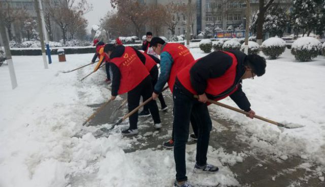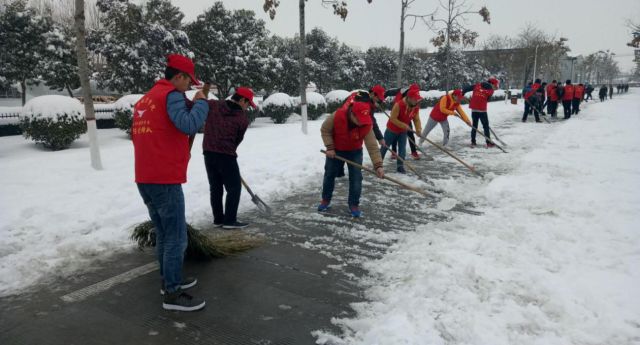 为了不影响老师同学们的正常出行,同时发扬志愿服务精神,发挥党员先锋模范作用,本着为同学服务的原则,公司党员先锋队与青年志愿者中队联合组织了义务扫雪除冰活动,对道路上的积雪进行了清扫,确保老师同学们的出行安全。