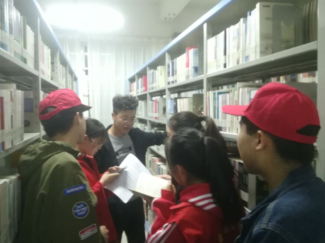 活动开始,“党员先锋队”成员分成五个小组向图书馆管理人员,学习了解相关图书查找和借阅流程。他们认真细心听取图书馆管理人员的讲解解和介绍。