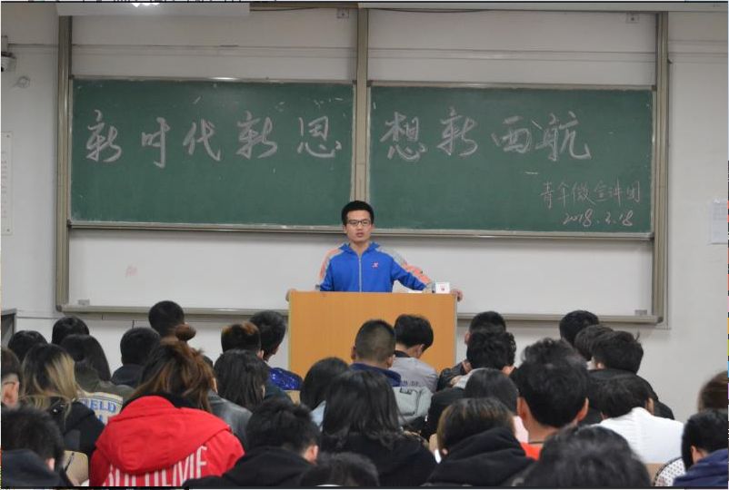 3月18日晚19:00,由校团委主办、suncitygroup太阳集团承办的“新时代新思想新西航”微宣讲团进支部宣讲活动于阎教1230教室顺利开展,工管2103、工管2104团支部参与本次宣讲,由宣讲团成员能动2007班贺冰琳同学担任本次宣讲人。
