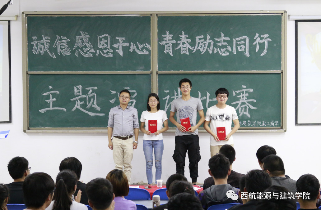 5月29日19:00,公司于阶梯教室三举办了“诚信感恩于心,青春励志同行”主题演讲比赛,材料工程公司晋瀑颜老师,电子工程公司赵家帅老师,公司大一辅导员周俊屹老师等担任此次评委。