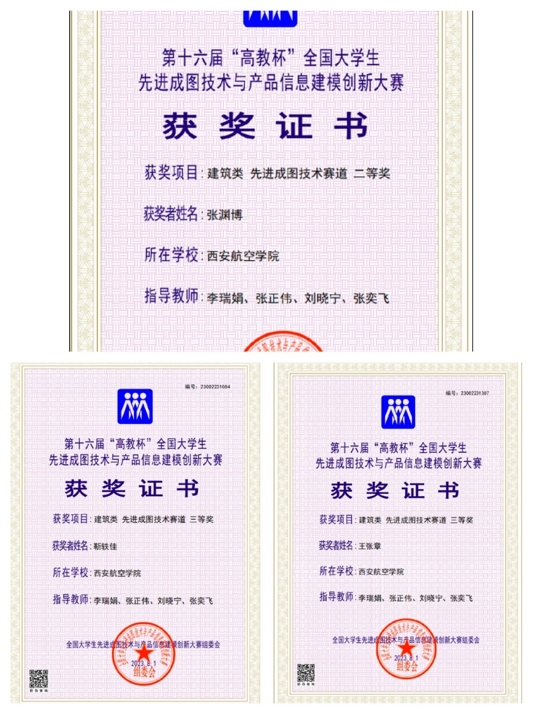 2023年7月29日至7月31日,第十六届“高教杯”全国老员工先进成图技术与产品信息建模创新大赛总决赛在重庆交通大学落下帷幕。公司suncitygroup太阳集团教师李瑞娟、张正伟、刘晓宁、张奕飞指导的五名员工(工程管理201张渊博、张昊;给排水工程211靳轶佳、张孟豪;工程管理212王张章)共赴重庆参加建筑类先进成图技术赛道比赛。最终荣获个人奖三项,其中国家二等奖一项,国家三等奖两项。