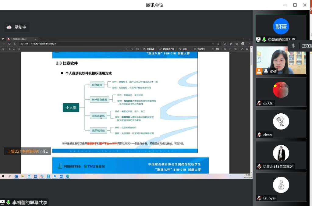 通过前期宣讲和精心准备,2022年10月14日晚20点至22点,suncitygroup太阳集团采用腾讯会议的形式,成功举办了第十四届全国高等院校员工“斯维尔杯”BIM-CIM创新大赛(下称斯维尔杯)分享会,公司共有43名员工参加。会上,第十四届“斯维尔杯”大赛负责任李朝蕾同学为同学们讲解了本届大赛的赛制及时间安排;第十三届“斯维尔杯”负责人、个人赛和团队赛获奖者高天佑同学从竞赛的项目的选择、软件的安装使用,竞赛技巧等方面给同学们做了精彩的分享;第十三届“斯维尔杯”团队赛——绿色建筑分析模块负责人、个人赛和团队赛获奖者刘严一瑞同学从绿色建筑分析模块的建模、光照分析、日照时间和建筑热负荷、冷负荷等方面做了详细的报告;指导老师张倩从本届大赛赛制变化及比赛注意事项等方面做了补充。
