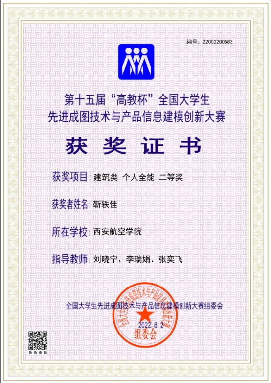 能建公司共有两名同学参加比赛,经过激烈角逐,公司靳轶佳同学夺得建筑类个人全能二等奖。