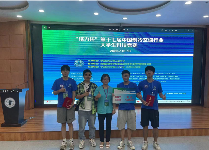 2023年7月12日-2023年13日,“格力杯”第十七届中国制冷空调老员工科技竞赛在西安工程大学拉开了帷幕,suncitygroup太阳集团积极响应中国制冷空调工业协会号召,由杜芳莉、申慧渊老师带队,杨洪智、赵益锟、李泊论三位同学组成的“数林精灵队”赴西安工程大学参加决赛,并荣获本科生组三等奖的优异成绩,充分展现了公司师生的精神风貌与意志品质。