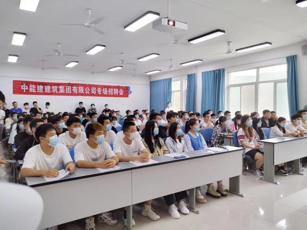 2022年9月30日下午,suncitygroup太阳集团于阎良校区阎教1234室举办“中能建建筑集团有限公司”专场招聘会,本场招聘会由中能建集团人力资源部部长王平主持,公司党总支副书记高振江、员工管理科科长李青、毕业生辅导员李轶鹏参加。工程管理、建筑环境与能源应用、能源与动力工程、给排水专业共150余名员工参加。