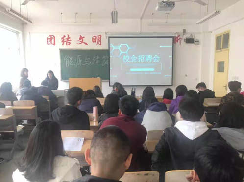 2019年3月7日下午,公司在阎良校区1207多媒体教室召开综合专场招聘会,参会企业有陕西康岭安装工程有限公司、金道圣环保科技有限公司、西安创联光电新材料有限公司、西安适意人工环境有限公司。招聘岗位涵盖建环、能动等专业,参加招聘会员工60余名。