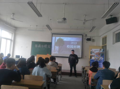 2019年3月13日下午,公司在阎良校区1208多媒体教室举办陕西中亚环境工程有限公司专场招聘会。招聘岗位涵盖建环、能动等专业,参加招聘会员工40余名。招聘会由就业辅导员赵莉老师主持,公司总经理王经理、人事部和销售部领导参加了本次招聘会。